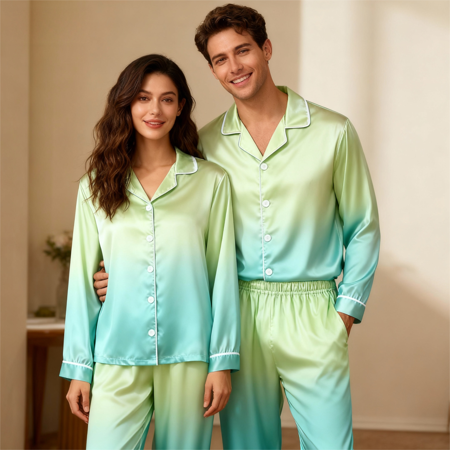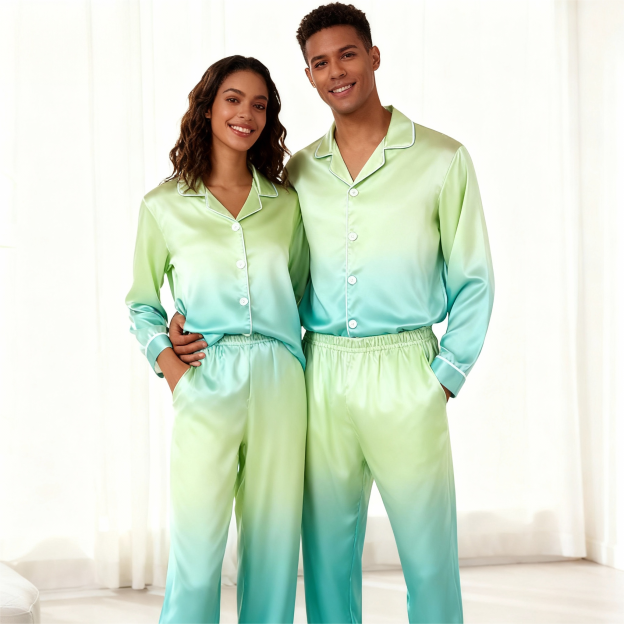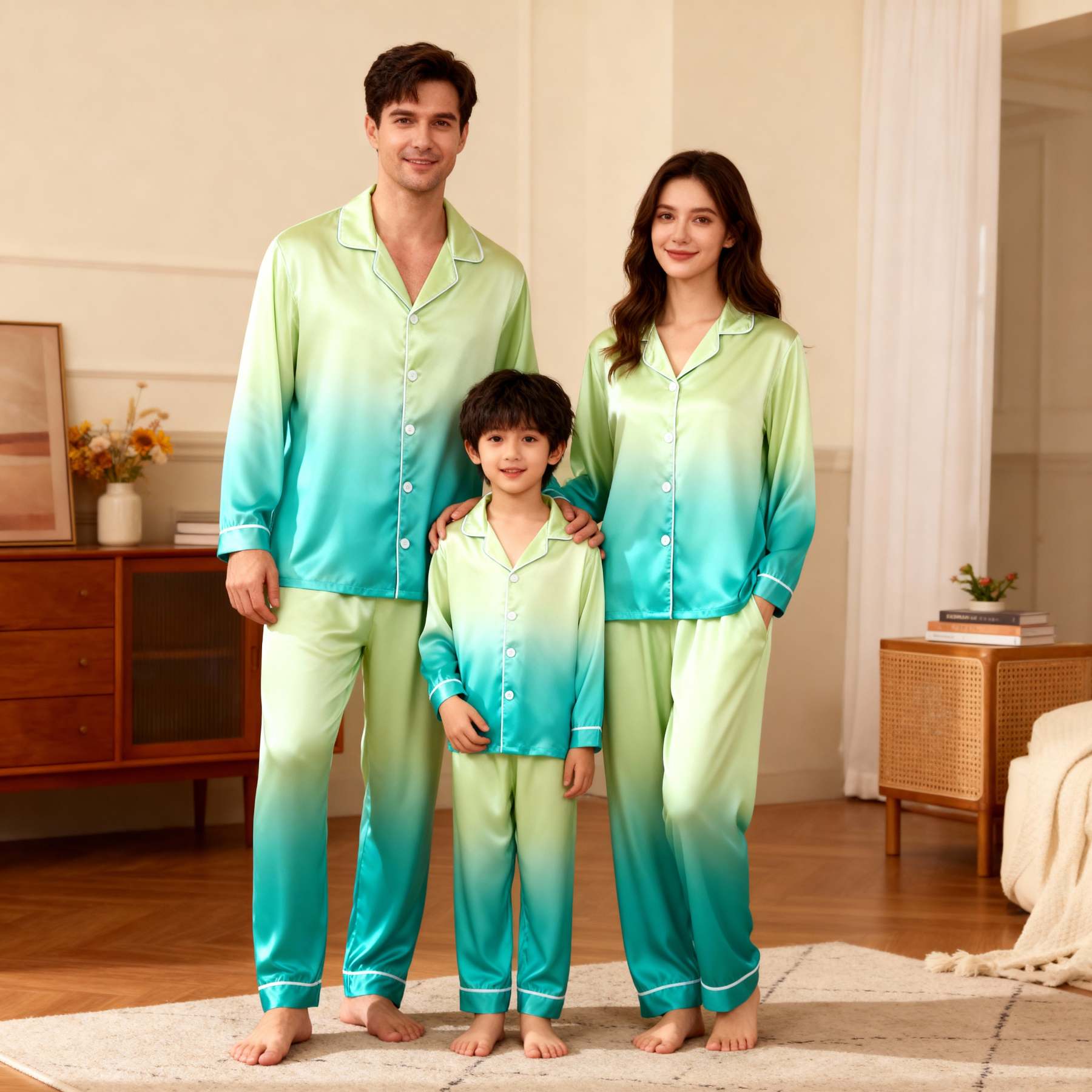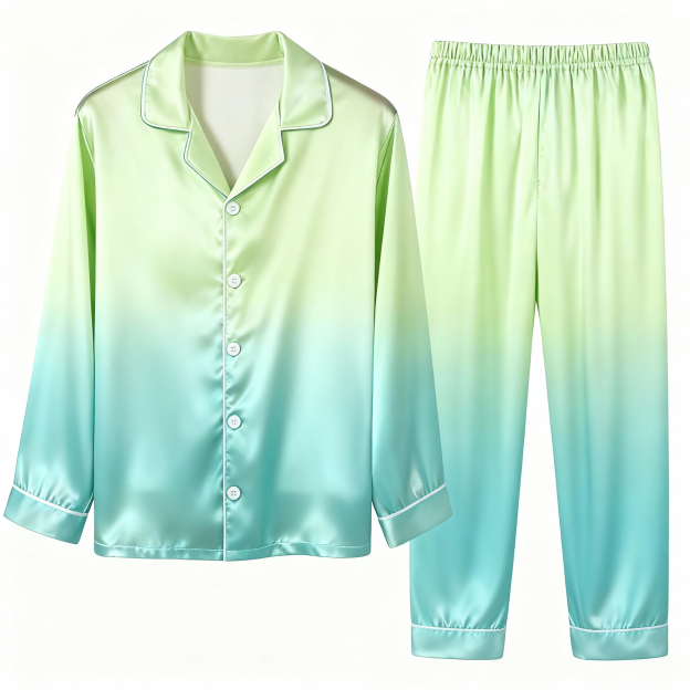 Gradient Color Satin Button-Up Family Christmas Pajamas Set