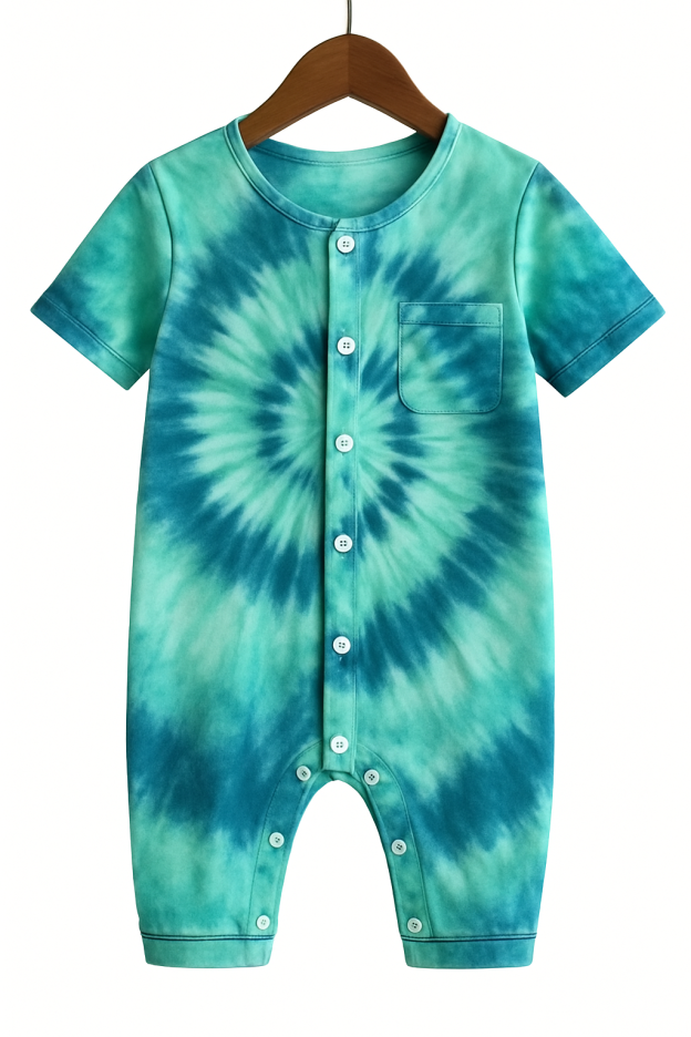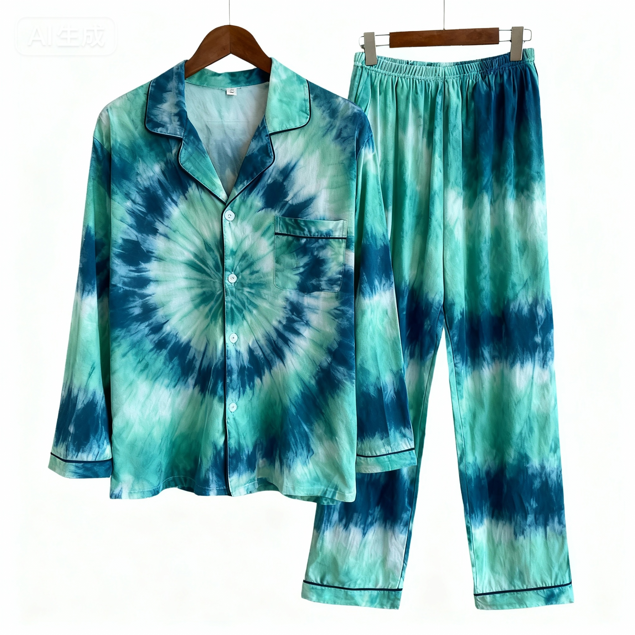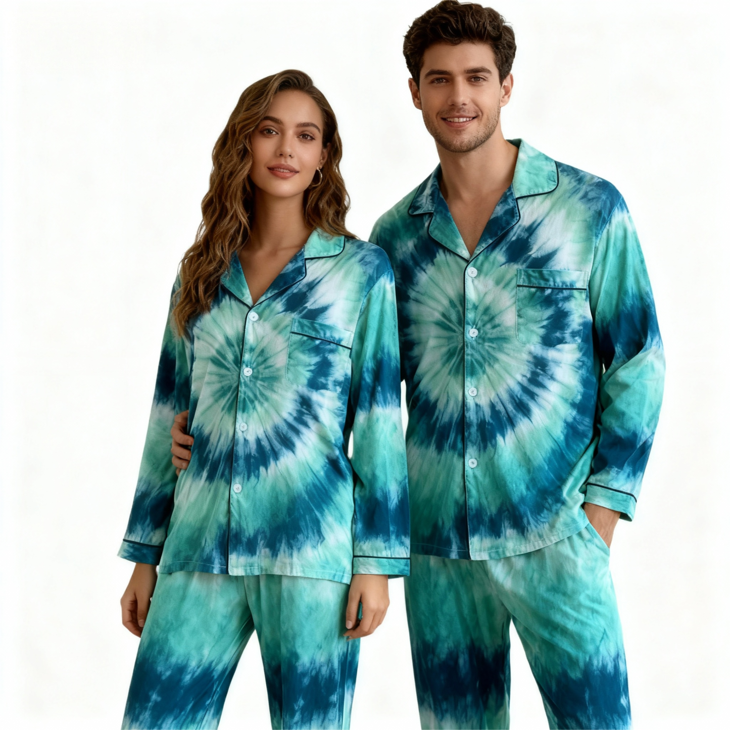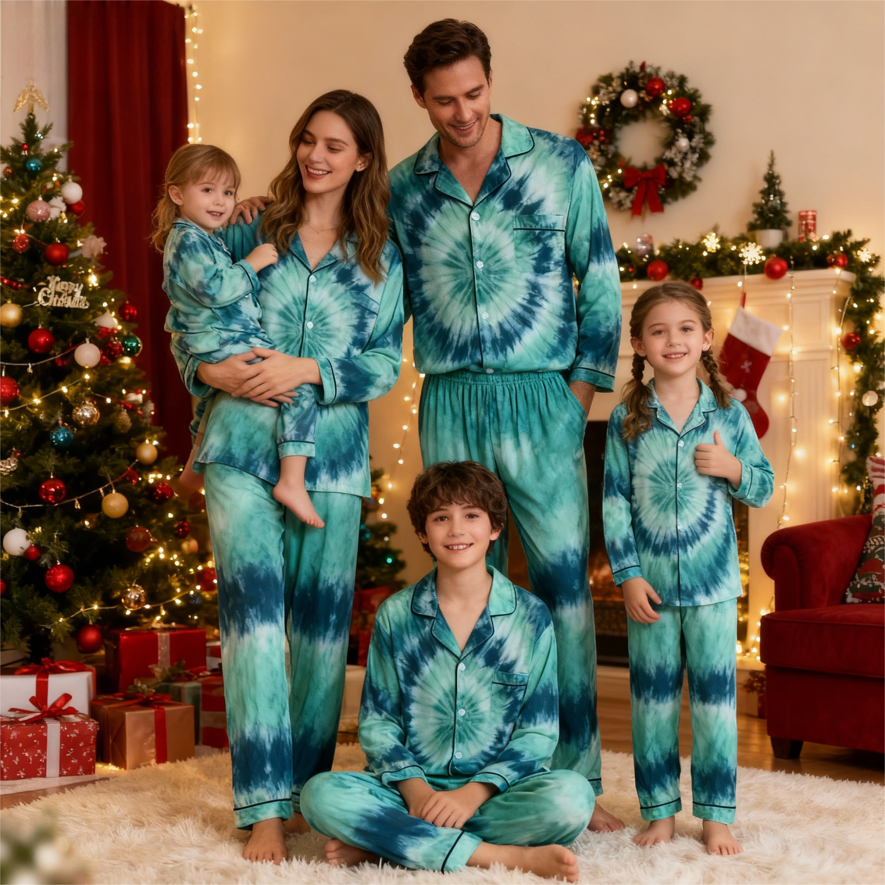 Holiday Family Button-Up Green Tie-dyed Christmas Pajamas Set