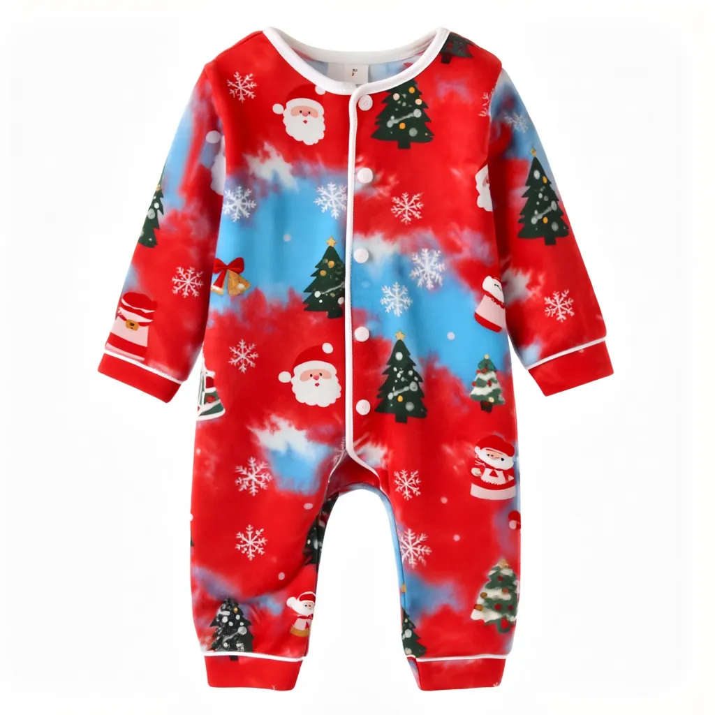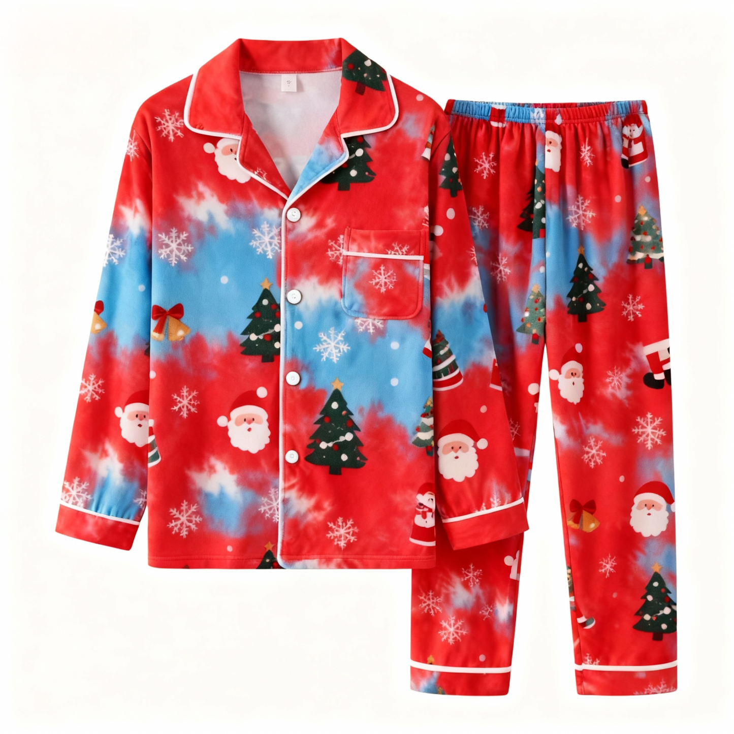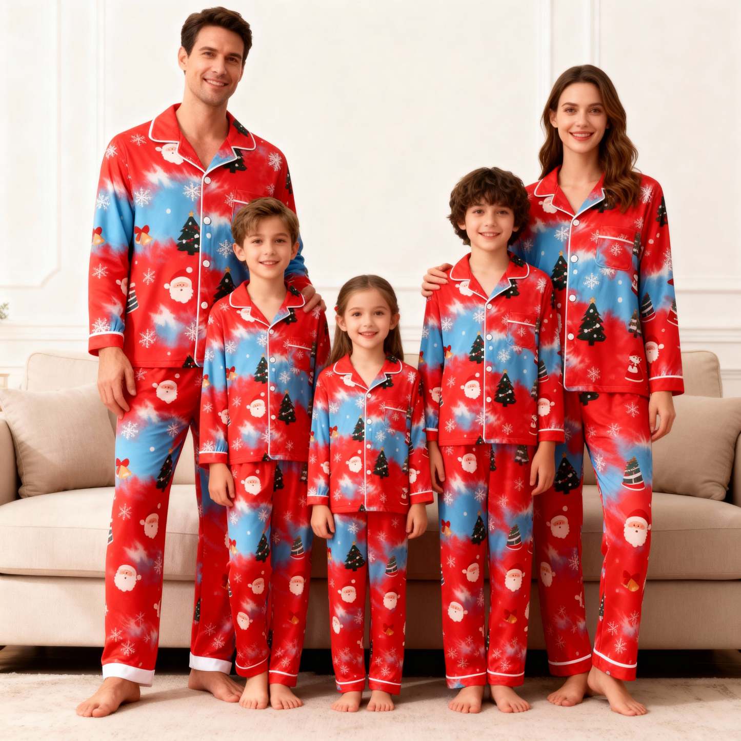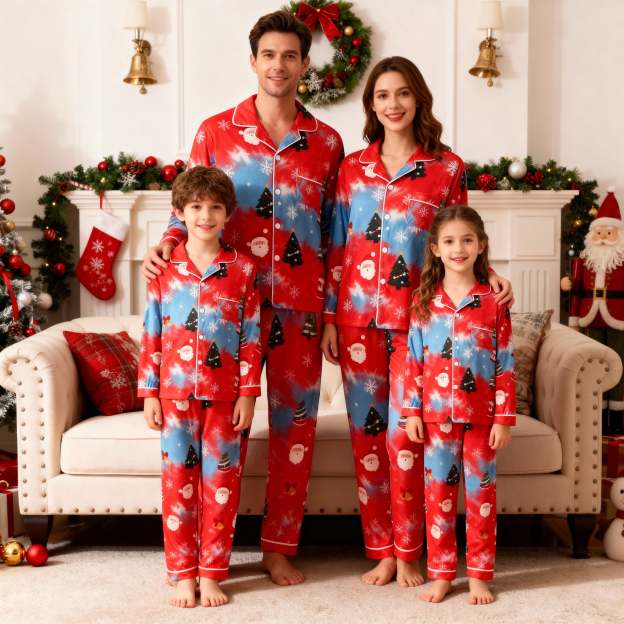 Holiday Family Button-Up Red Tie-dyed Christmas Pajamas Set