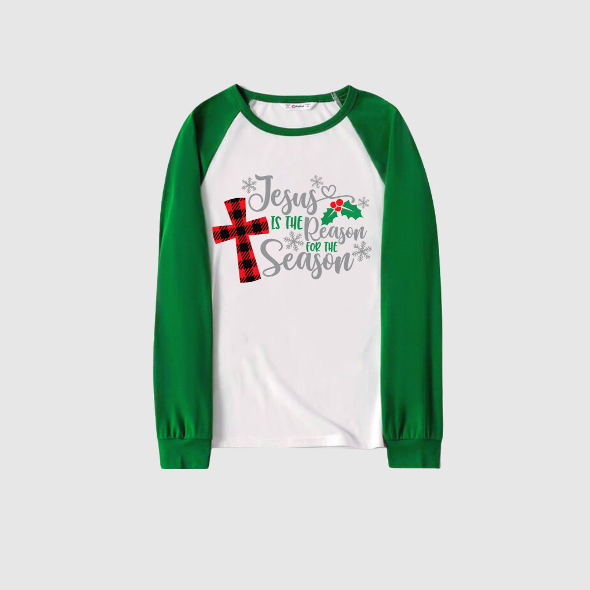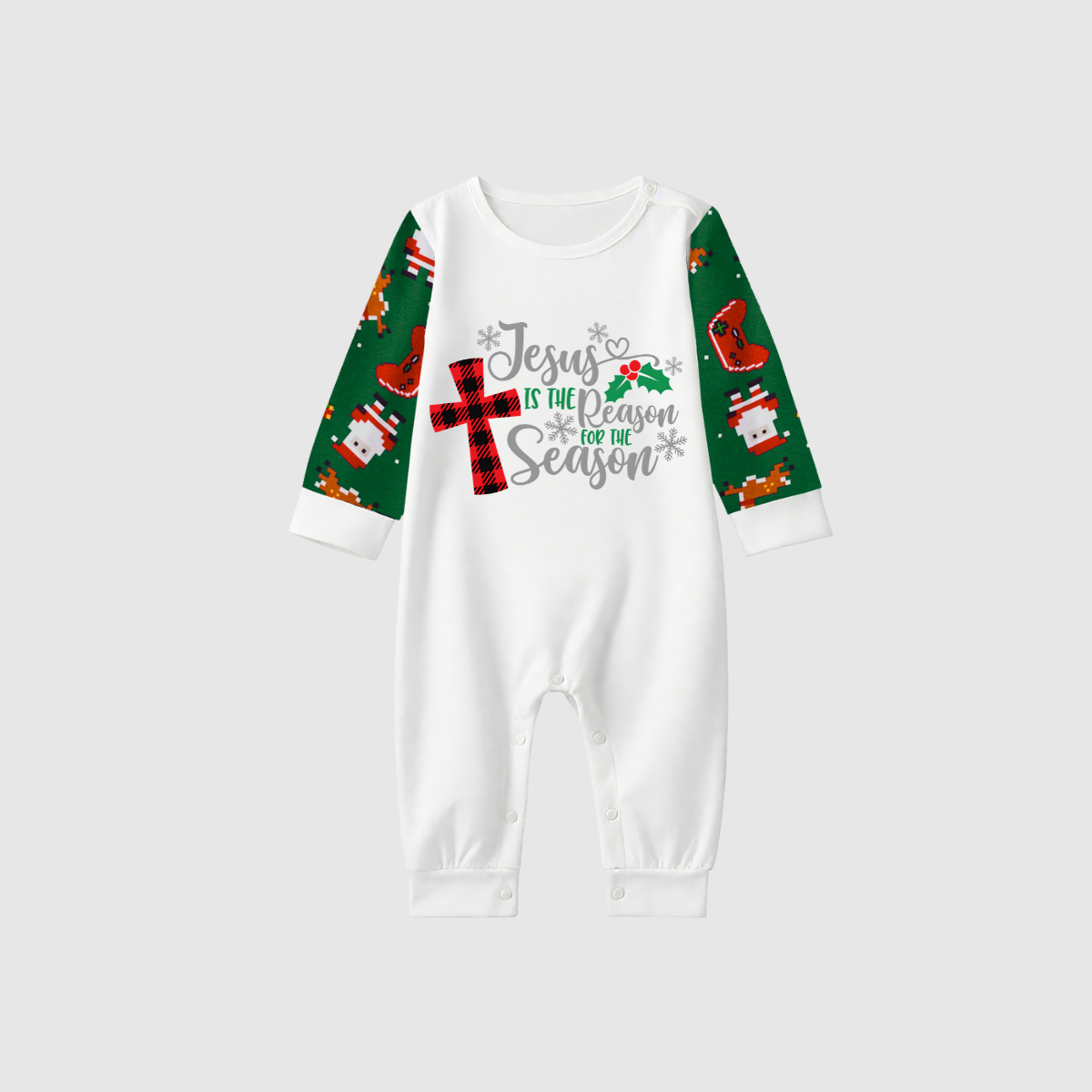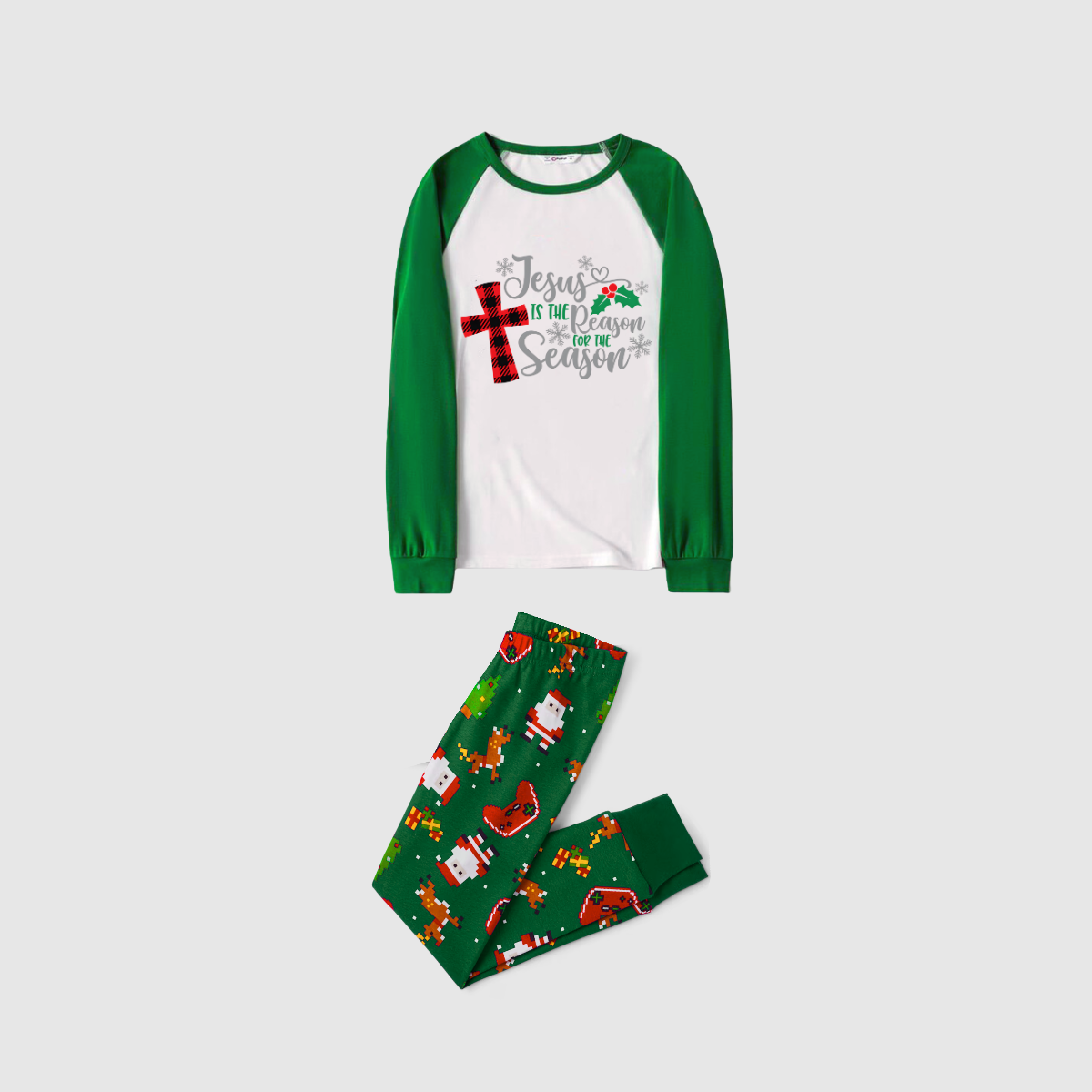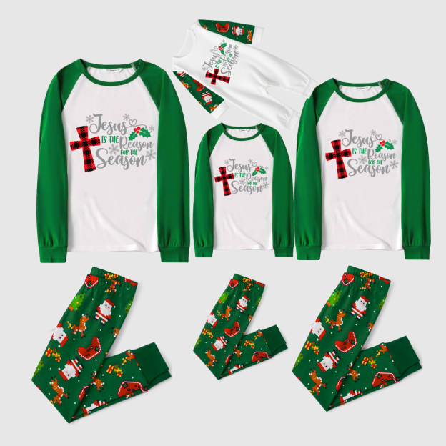 Jesus Reason Christmas Pajamas - Green & Santa Print