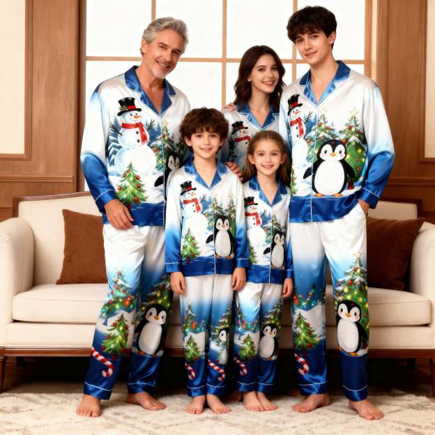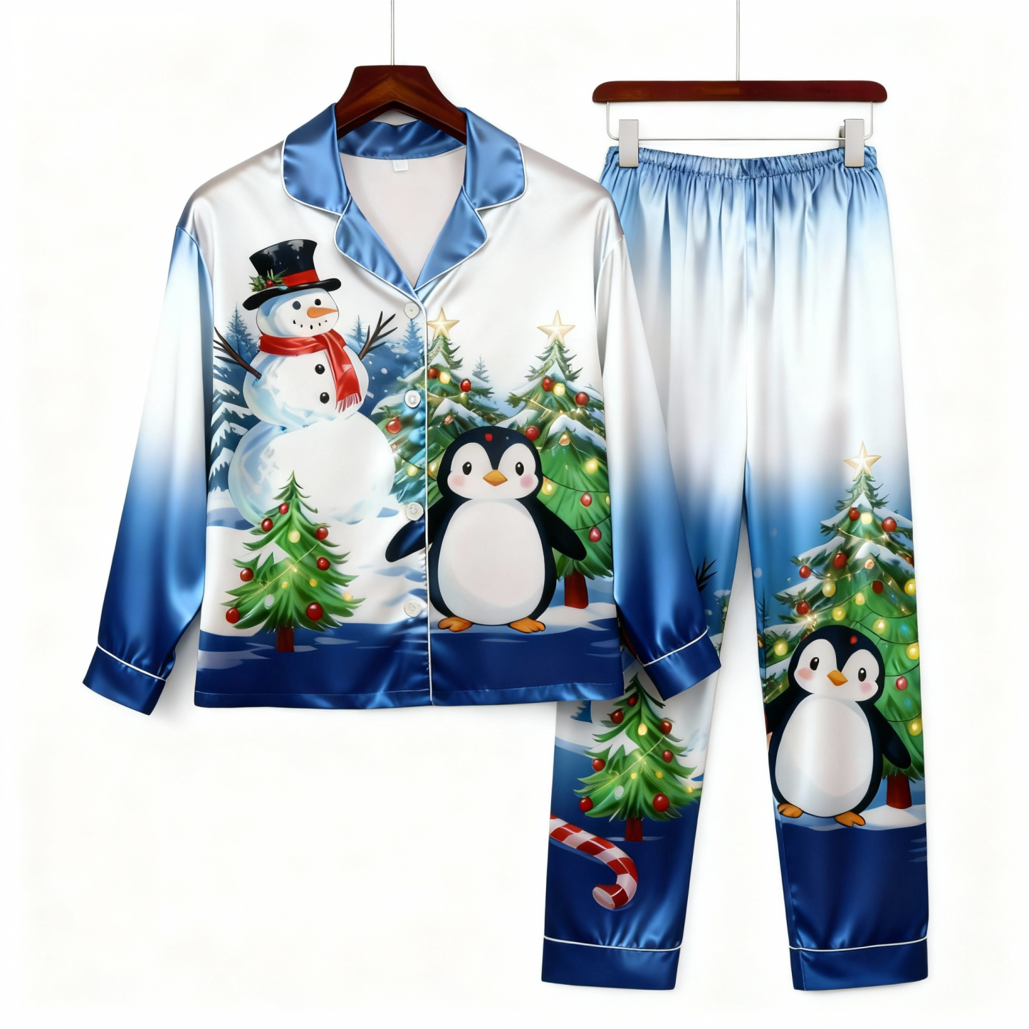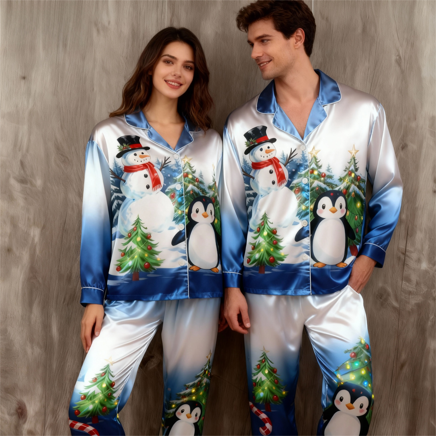 Joyful & Coordinated Satin Family Christmas Pajamas Set