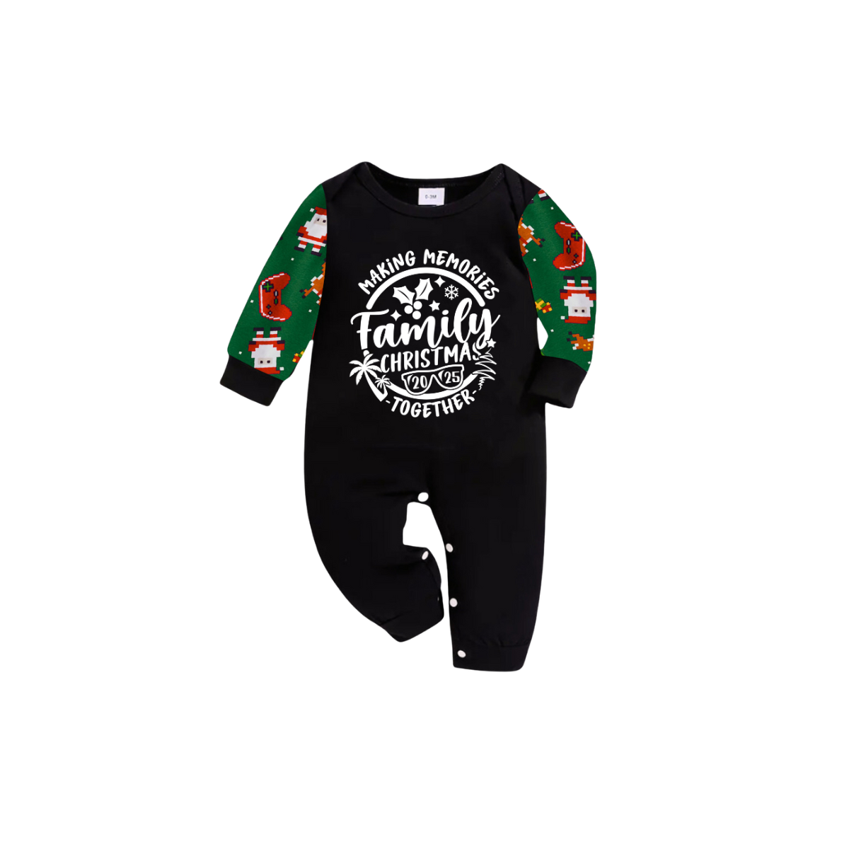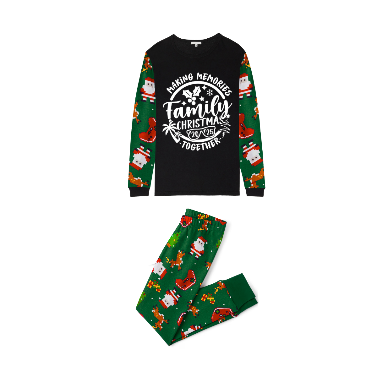 Making Memories Family Christmas Pajamas - Black & Green Santa Print