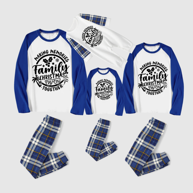 Making Memories Family Christmas Pajamas - White & Blue Plaid