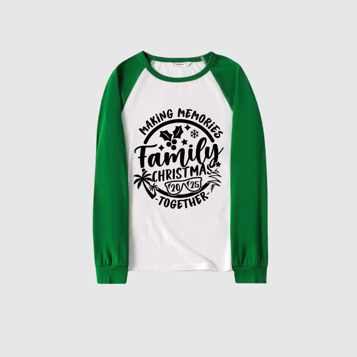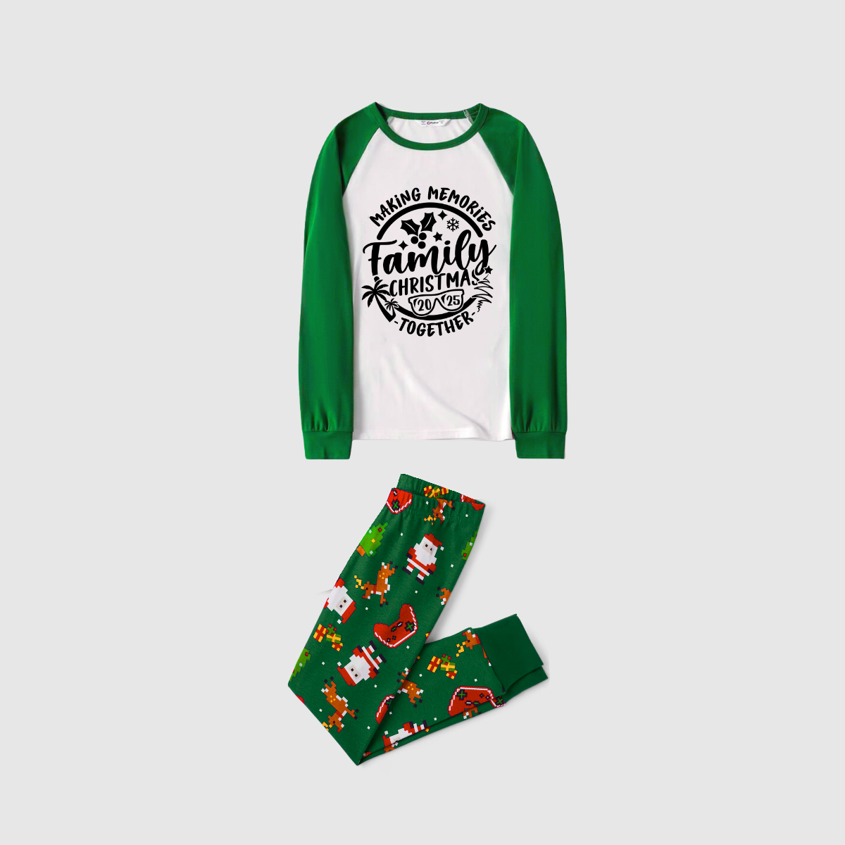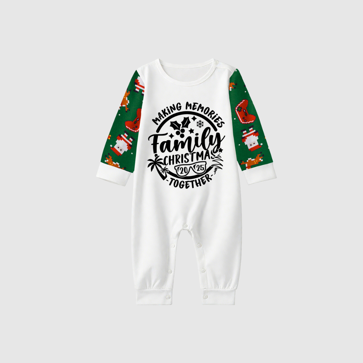 Making Memories Family Christmas Pajamas - White & Green Santa Print
