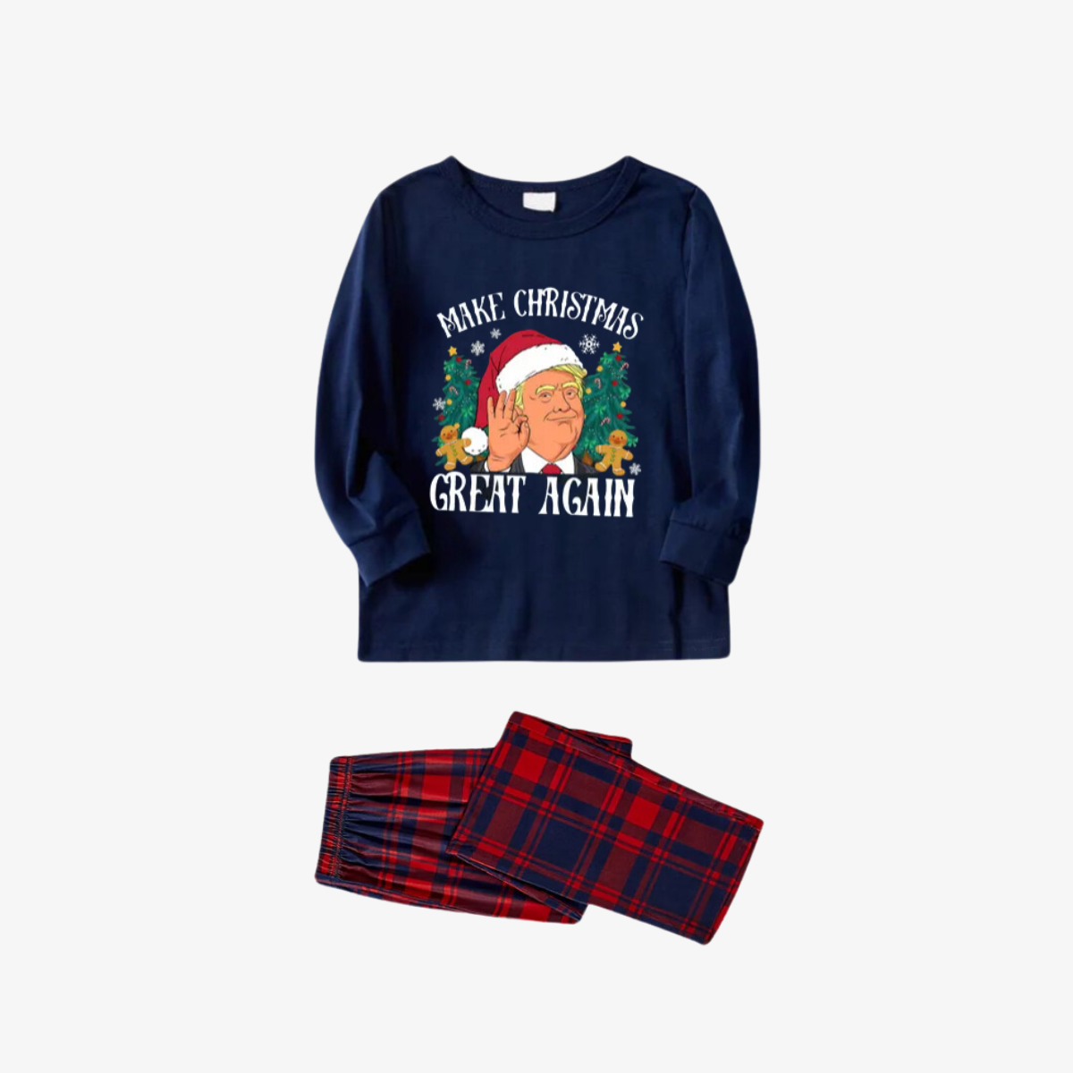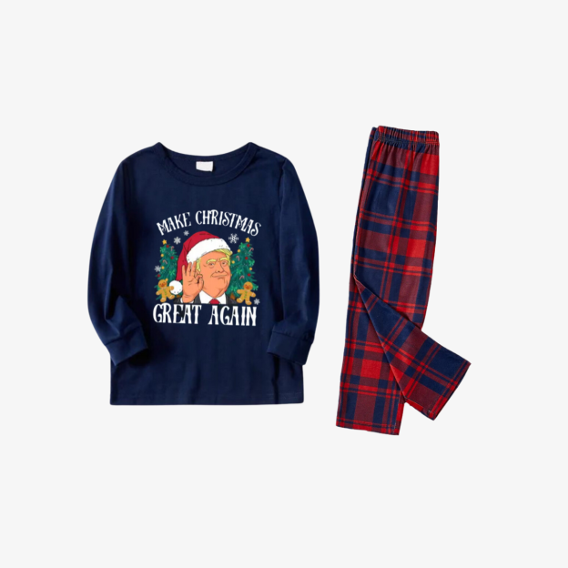 "MERRY CHRISTMAS GREAT AGAIN" Letter Printed Red and Blue Plaid Family Pajamas Sets