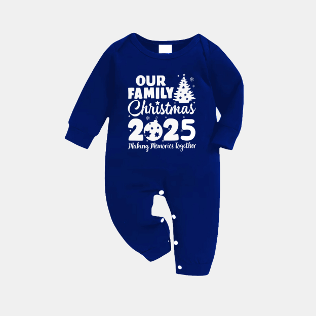 'Our Family Chirstmas 2025 Making Memories Together' Letter Print (White) Blue Plaid Family Matching Pajamas