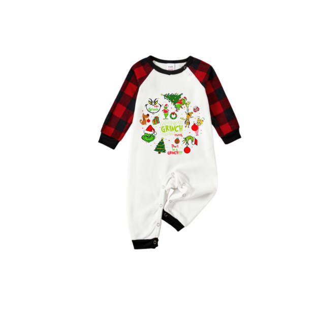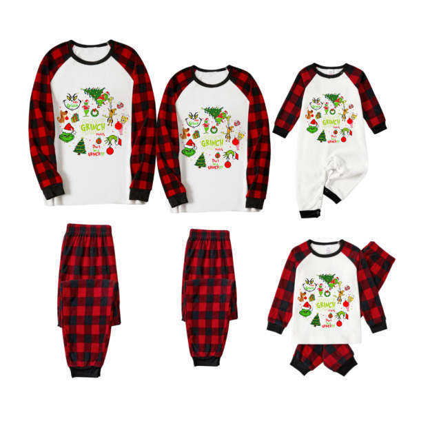 Red and Black Plaid Christmas Pajamas Set With Grinch and Christmas Pattern Print