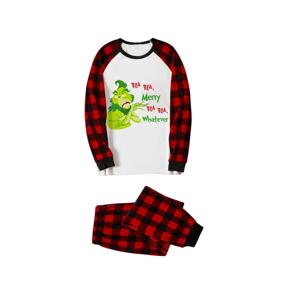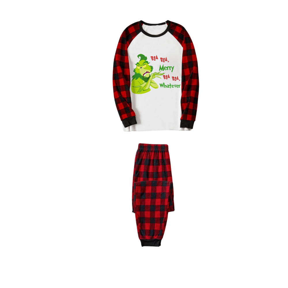 Red and Black Plaid Christmas Pajamas Set With Grinchy Cartoon Print