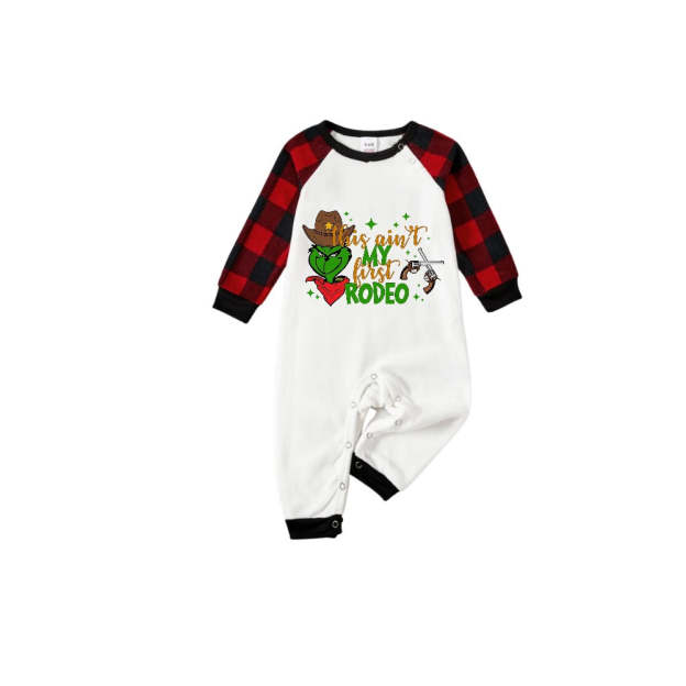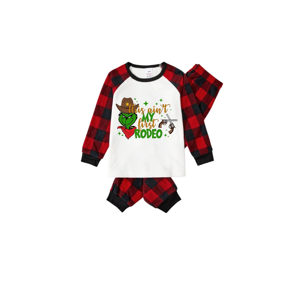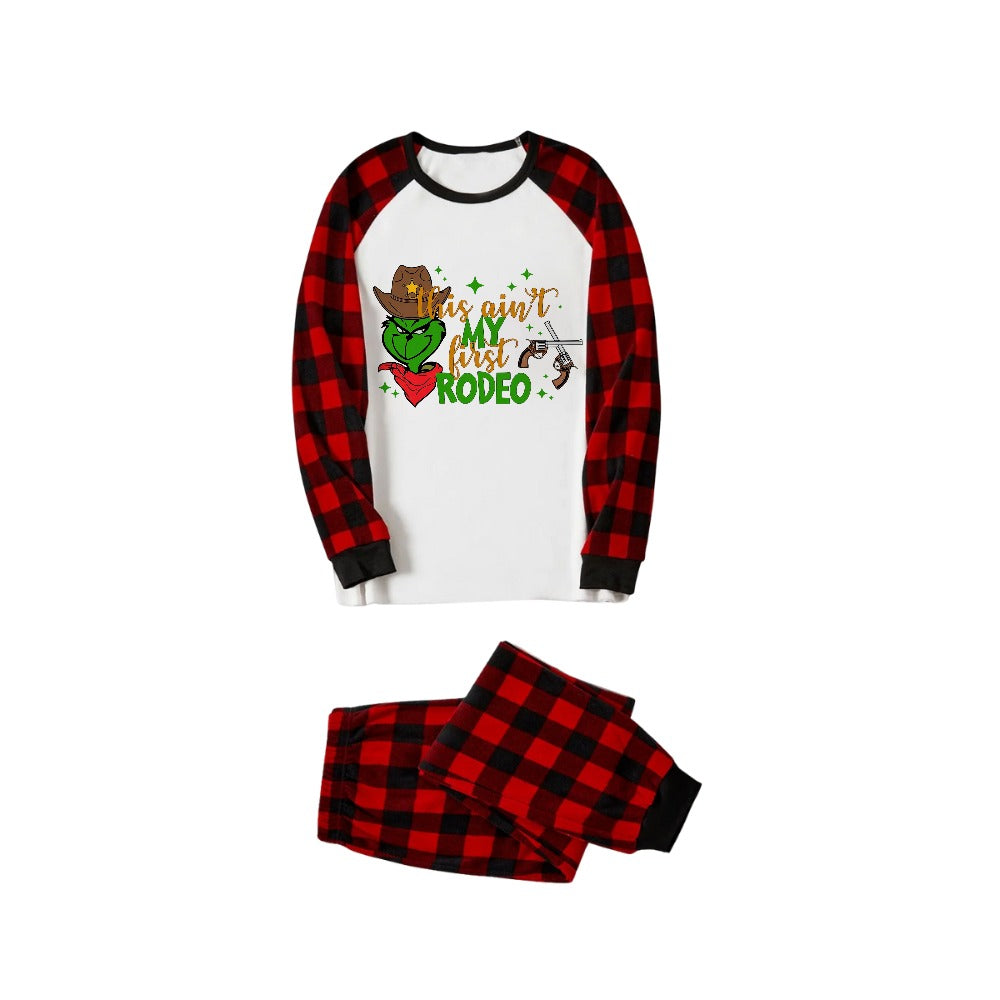Red and Black Plaid Christmas Pajamas Set With "This Ain't My First Rodeo" Cartoon Print