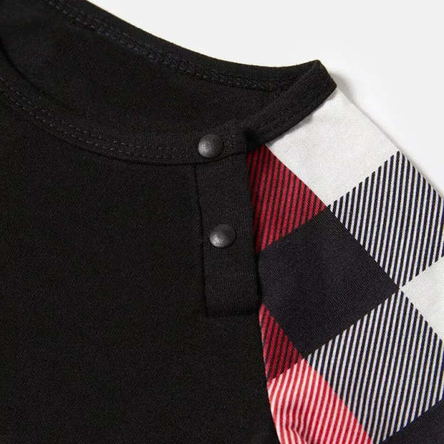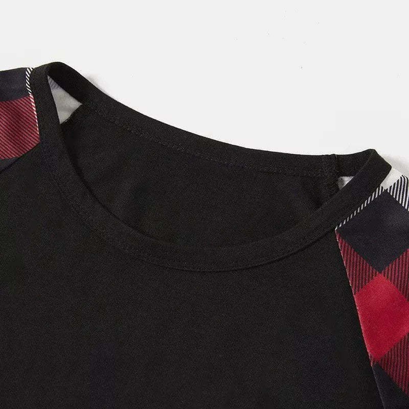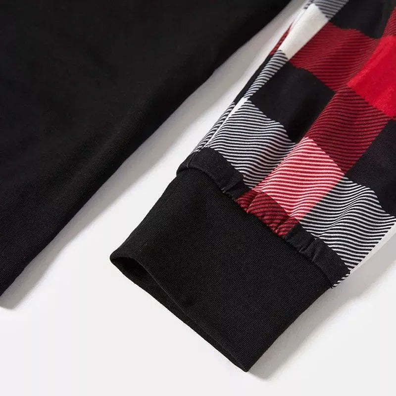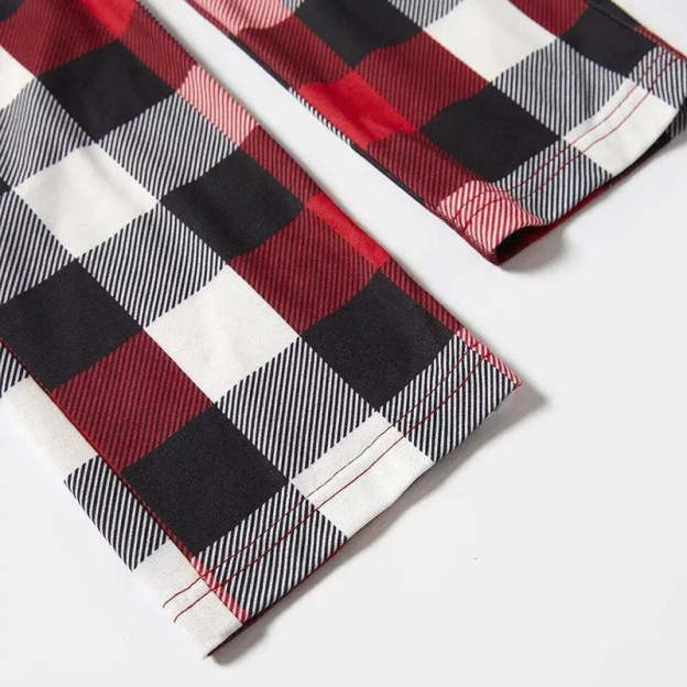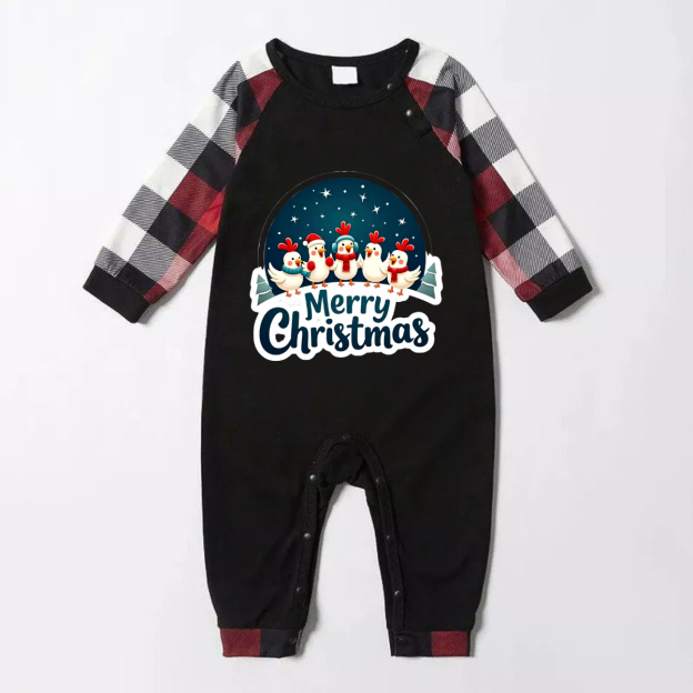 Red and Gray Plaid Christmas Pajamas Set With Happy Chickens and "Merry Christmas" Text Print
