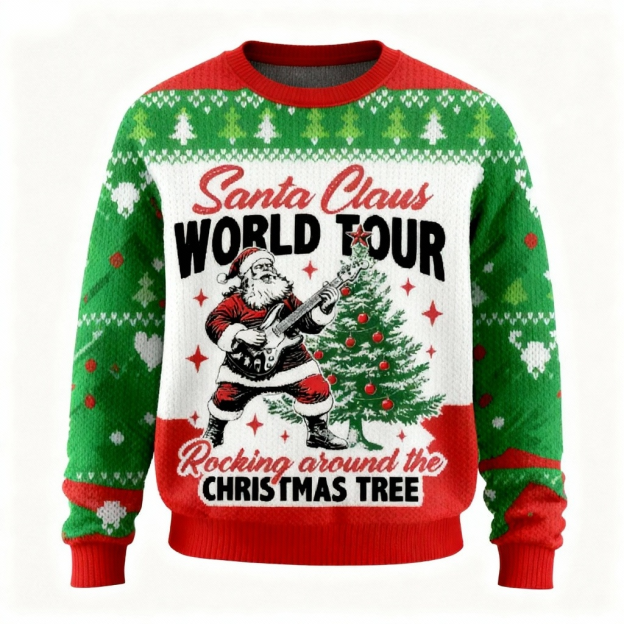 Santa Claus Print Unisex Ugly Christmas Sweater - Funny Holiday Party Pullover