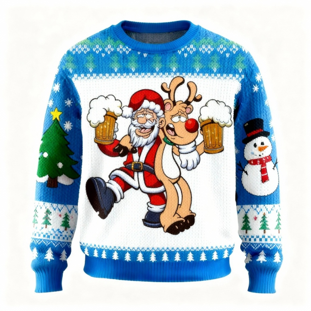Wacky Xmas Cartoon Pattern Print Sweater - Ugly & Cozy Unisex Pullover