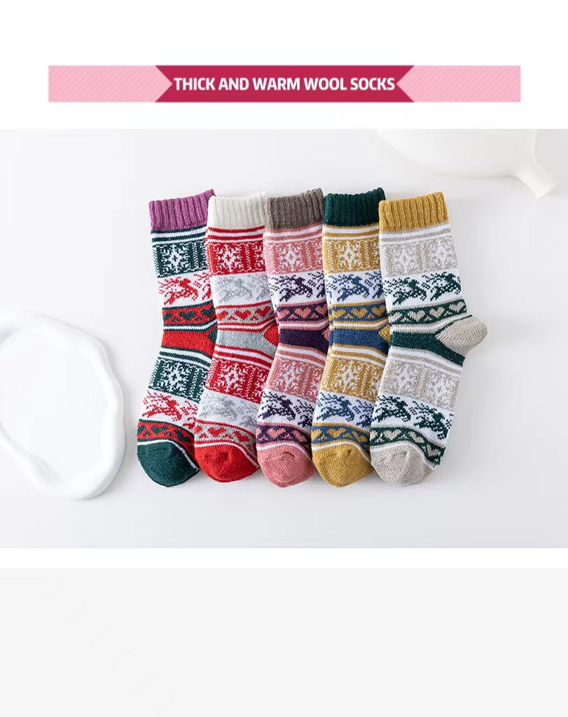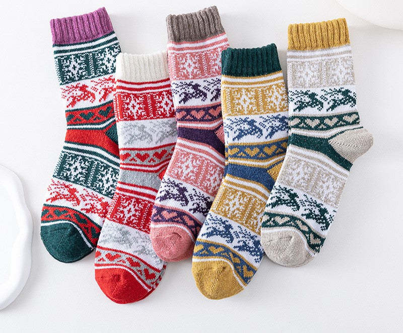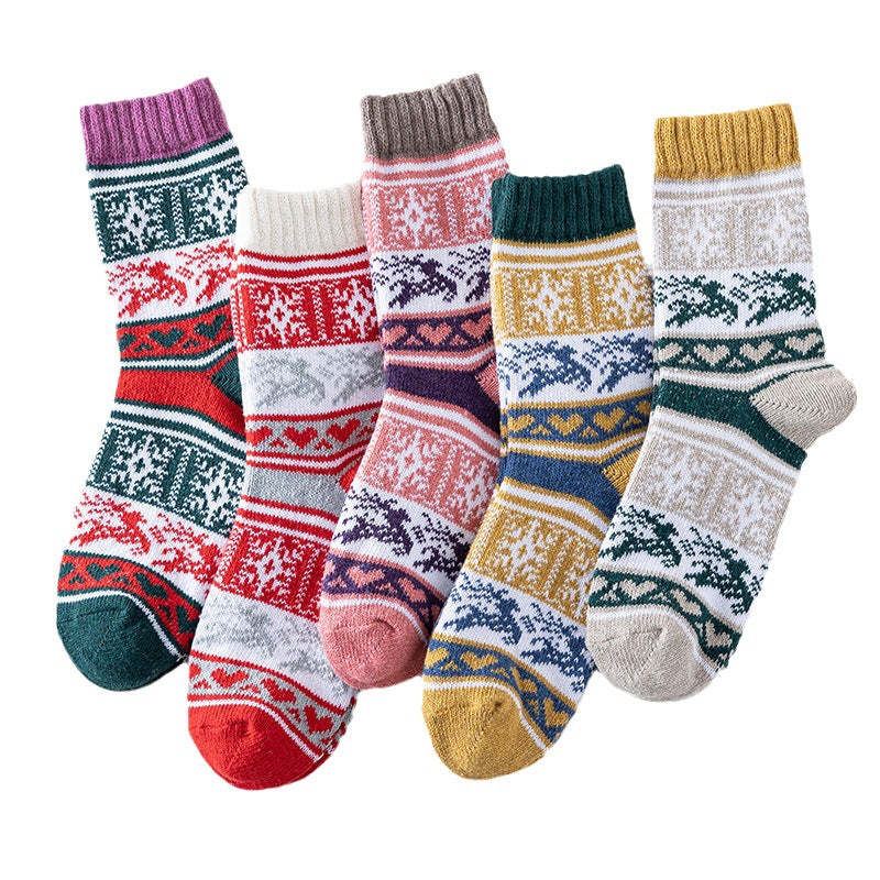 Winter New Socks Mid Calf Socks Rabbit Wool Socks Christmas Women's Socks