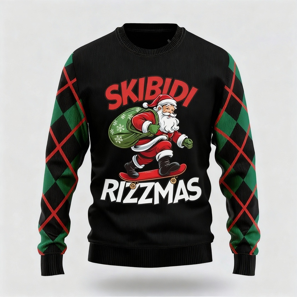 Santa Claus Print - Maximalist Christmas Print Ugly Sweater