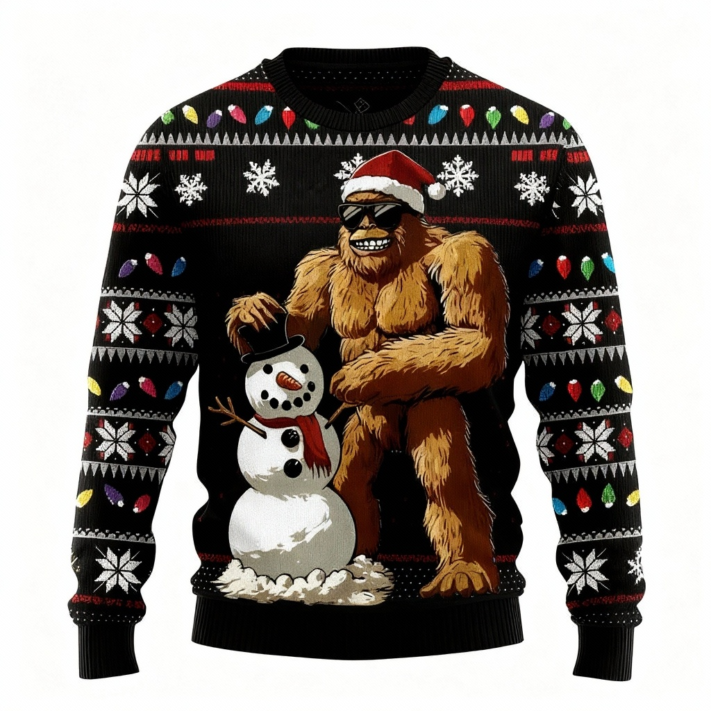 Xmas Animal & Snowman Print - Ugly Christmas Icon Mash-Up Ugly Sweater