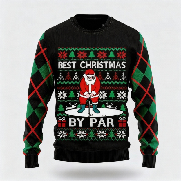 Colorful Santa Claus Pattern Design - Maximalist Christmas Print Ugly Sweater