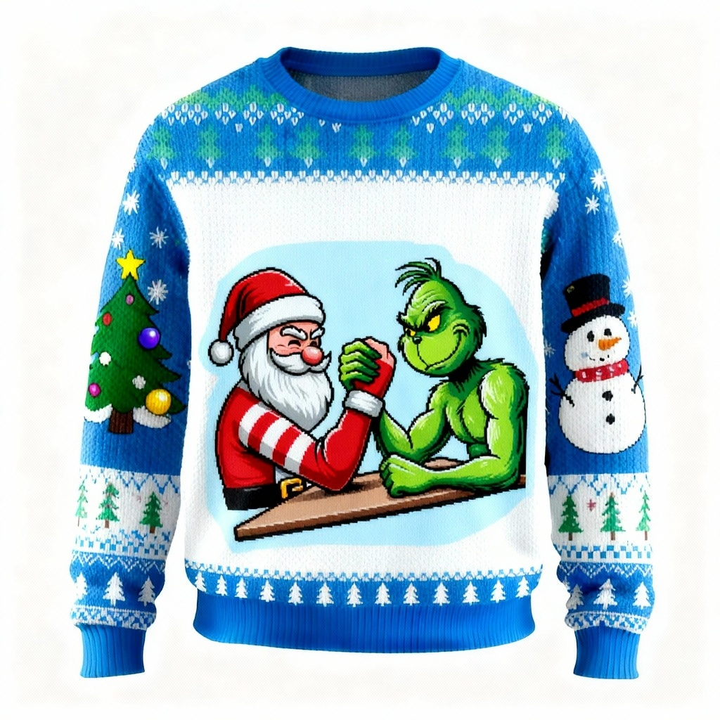 Zany Santa Claus Pattern Print Holiday Sweater - Ultimate Ugly Christmas Party Look