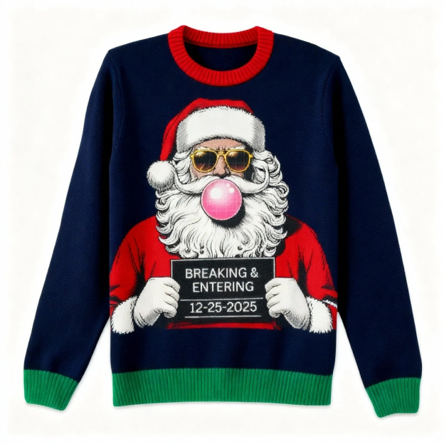 Zany Santa Print Holiday Sweater - Intentional Festive Quirk